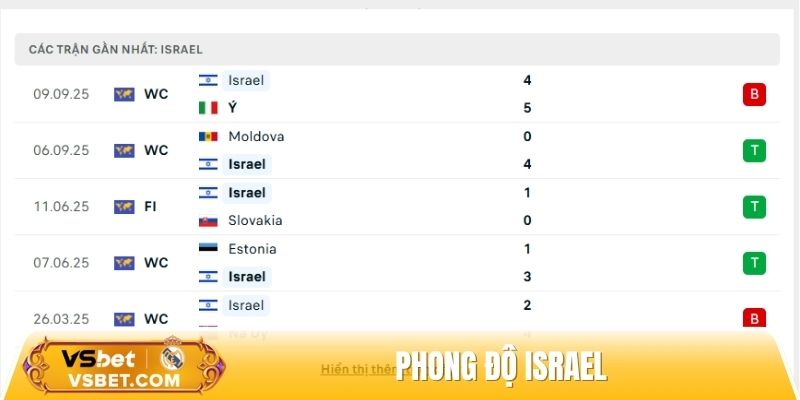 Ngược lại, đội tuyển Israel đang trải qua giai đoạn thăng trầm rõ rệt. Họ đang đứng ở vị trí thứ 3 ở bảng đấu với 9 điểm sau 5 vòng. Đoàn quân Alon Hazan đã có kết quả bóng đá bùng nổ khi đè bẹp Moldova 4-0.