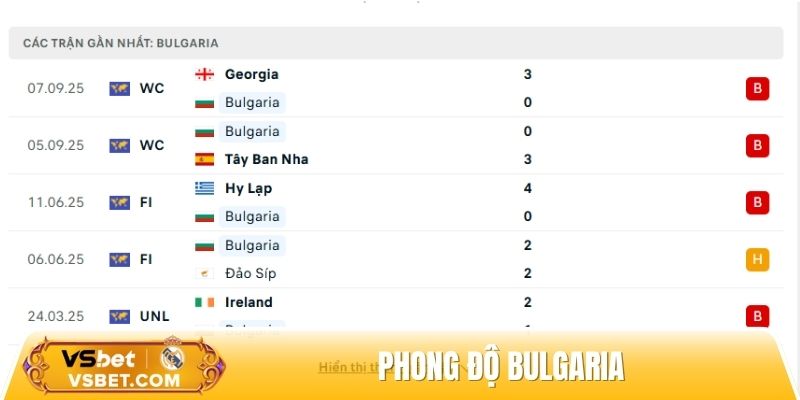 Phong độ Bulgaria