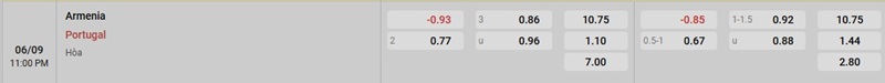 Soi kèo Armenia vs Bồ Đào Nha qua tỷ lệ
