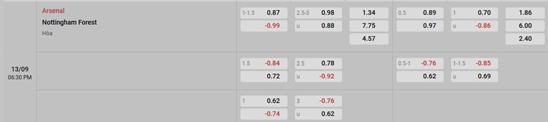 Soi kèo Arsenal vs Nottingham qua tỷ lệ