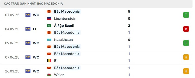 Phong độ của Bắc Macedonia