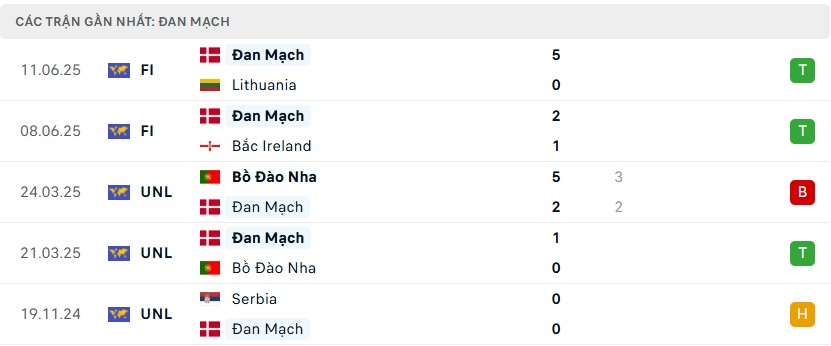 Phong độ gần đây của đội tuyển Đan Mạch