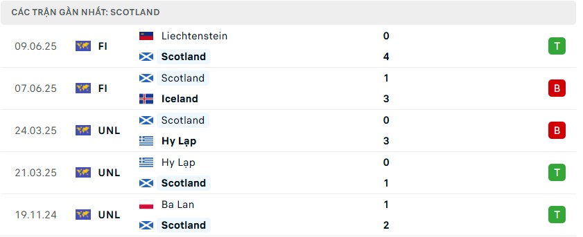 Phong độ gần đây của đội tuyển Scotland