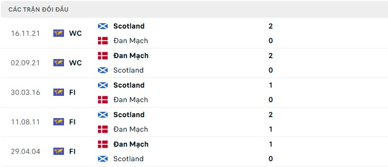 Phong độ của Đan Mạch vs Scotland gần đây