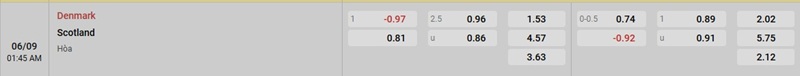 Soi kèo Đan Mạch vs Scotland qua tỷ lệ kèo châu Á