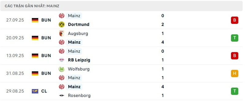 Thời điểm hiện tại, đội bóng Mainz 05 đang đứng ở vị trí thứ 14 với 4 điểm, xếp ngay sau Hamburger. Rõ ràng đây là thành tích chưa thể đem đến sự hài lòng cho người hâm mộ, thêm vào đó là cả cách Mainz trình diễn. Đội bóng này sẽ cần phải đưa ra sự thay đổi nhanh chóng trong bối cảnh họ phải đan xen lịch thi đấu với giải cúp châu Âu.