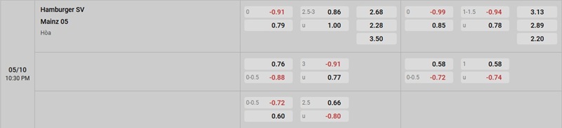 Soi kèo Hamburger vs Mainz qua tỷ lệ