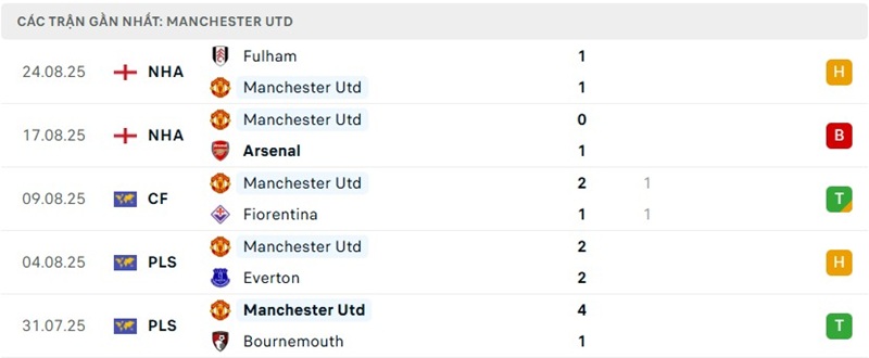 Phong độ thi đấu của Man United vs Burnley lúc này đều đang tồn tại những vấn đề nhất định. Trong khi đội chủ nhà chật vật tìm kiếm chiến thắng đầu tiên thì đội khách cũng cho thấy sự thiếu ổn định. Cả hai đều rất cần một kết quả có lợi vào 21h00 ngày 30/08/2025 để cải thiện vị trí trên bảng xếp hạng và lấy lại tinh thần cho chặng đường dài phía trước.