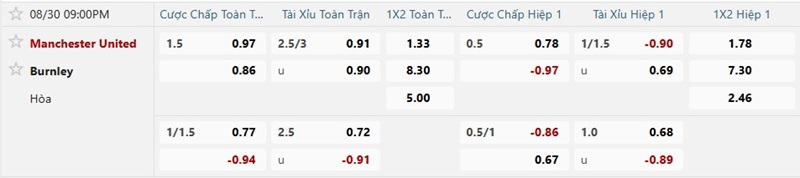 Soi kèo Man United vs Burnley qua tỷ lệ