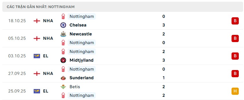 Cuộc chiến tại Europa League dường như đang trở nên quá sức với Nottingham Forest khi họ vẫn chưa thể tìm thấy sự ổn định cần thiết. Phong độ của đội chủ sân The City Ground thực sự đáng báo động khi không biết đến mùi chiến thắng trong 6 trận gần nhất trên mọi đấu trường, trong đó có tới 4 thất bại và chỉ 2 trận hòa.