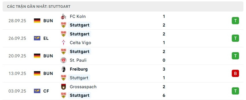 Phong độ của Stuttgart