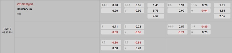Soi kèo Stuttgart vs Heidenheim qua tỷ lệ