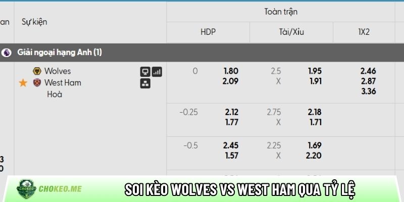 Soi kèo Wolves vs West Ham qua tỷ lệ